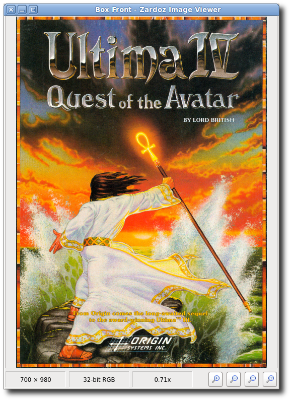 In the launcher mode, Zardoz functions as an application launcher and asset viewer for MS-DOS games that have been packaged as described above. You can install a new game in Zardoz by pointing it at the ".doz" file, either on the web or in the local filesystem. Zardoz will download the archive file (if it's on the web), unpack it, and install the game into its launcher screen. You can then view the game's assets and launch the game with a few clicks of the mouse—no configuration required! Zardoz even comes bundled with DOSBox, so it's not necessary to install it separately.